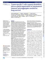Tumor-specific T cells support chemokine-driven spatial organization of intratumoral immune microaggregates needed for long survival