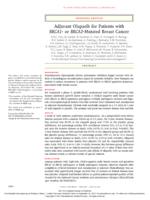 - Tutt, A.N.J.; Garber, J.E.; Kaufman, B.; Viale, G.; Fumagalli, D.; Rastogi, P.; Gelber, R.D.; Azambuja, E. de; Fielding, A.; Balmana, J.; Domchek, S.M.; Gelmon, K.A.; Hollingsworth, S.J.; Korde, L.A.; Linderholm, B.; Bandos, H.; Senkus, E.; Suga, J.M.; Shao, Z.; Pippas, A.W.; Nowecki, Z.; Huzarski, T.; Ganz, P.A.; Lucas, P.C.; Baker, N.; Loibl, S.; McConnell, R.; Piccart, M.; Schmutzler, R.; Steger, G.G.; Costantino, J.P.; Arahmani, A.; Wolmark, N.; McFadden, E.; Karantza, V.; Lakhani, S.R.; Yothers, G.; Campbell, C.; Geyer, C.E.; OlympiA Clinical Trial Steering