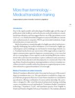 Medical translation is mainly thought of as highly specialised and terminologically challenging, but medical translation is not restricted to highly specialised genres and its challenges are not limited to terminology (Montalt 2012: 1). Translated medical texts can vary in terms of the target audience (expert-to- expert communication, expert-to-layperson communication, or vice-versa, but also in a varying degree of semi-experts), modes (including Web texts, instructional videos, television documentaries or press conferences) and communicative...