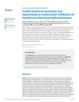Conformational dynamics and asymmetry in multimodal inhibition of membrane-bound pyrophosphatases