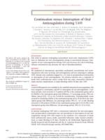 A total of 858 patients were included in the modified intention-to-treat population: 431 were assigned to continuation and 427 to...Show moreBackgroundOne third of patients undergoing transcatheter aortic-valve implantation (TAVI) have an indication for oral anticoagulation owing to concomitant diseases. Interruption of oral anticoagulation during TAVI may decrease the risk of bleeding, whereas continuation may decrease the risk of thromboembolism.MethodsWe conducted an international, open-label, randomized, noninferiority trial involving patients who were receiving oral anticoagulants and were planning to undergo TAVI. Patients were randomly assigned in a 1:1 ratio to periprocedural continuation or interruption of oral anticoagulation. The primary outcome was a composite of death from cardiovascular causes, stroke from any cause, myocardial infarction, major vascular complications, or major bleeding within 30 days after TAVI.Results