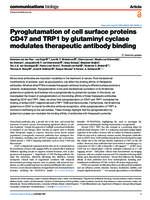 Pyroglutamation of cell surface proteins CD47 and TRP1 by glutaminyl cyclase modulates therapeutic antibody binding