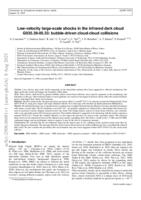 Low-velocity large-scale shocks in the infrared dark cloud G035.39-00.33: bubble-driven cloud-cloud collisions