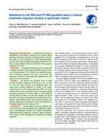 Results - 285 studies were included, most of which assessed prosthesis migration in the hip (n = 161) or knee (n = 99). No study reported on all guideline items. The mean (full or partial) adherence of studies to all (applicable) items was 61% (standard deviation [SD] 11). Large...