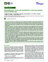 Materials and methods: In this study, we validated a fully automated artificial intelligence-based TSR quantification algorithm in hematoxylin-eosin-stained slides from the UNITED cohort, including 853 stage II and III colon cancer patients who had not received neoadjuvant therapy. The algorithm segmented 11 tissue classes on whole-slide images and calculated TSR as stroma/(stroma + epithelial tumor). A 1-mm region of interest was implemented, and an optimal automated cut-off of 77% was derived using receiver operating...