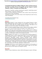 Show moreBackground Alterations in amine metabolism have been implicated Alzheimer’s disease (AD). Cerebrospinal fluid (CSF) and plasma are key biofluids in AD research. CSF is considered to better reflect brain metabolic alterations than plasma, while plasma can be obtained more easily. However, plasma-CSF relationships are unclear.