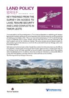 Key Findings from the Survey on Access to Land, Tenure Security and Land Conflicts in Timor-Leste