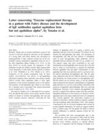 Letter concerning "Enzyme replacement therapy in a patient with Fabry disease and the development of IgE antibodies against agalsidase beta but not agalsidase alpha", by Tanaka et al.