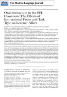 Oral Interaction in the EFL Classroom: The Effects of Instructional Focus and Task Type on Learner Affect