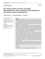 The present study establishes clinical and demographic patient variables relevant for representativeness of the outcome information. It applies strategies to estimate sample selection bias (weighting by inclusion propensity) and selective attrition bias (multiple imputation based on multilevel regression analysis) and estimates the extent of their impact on an index of provider performance. The association between estimated bias and response rate is also investigated.